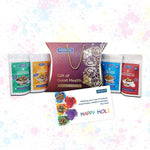 Keeros Healthy Holi Gift Hamper with Card for Friends & Family | Variety of Sweet & Salted, Tasty & Nutritious Roasted Super Snacks | 4 Healthy Snacks Pouches of 35 to 50 Grams