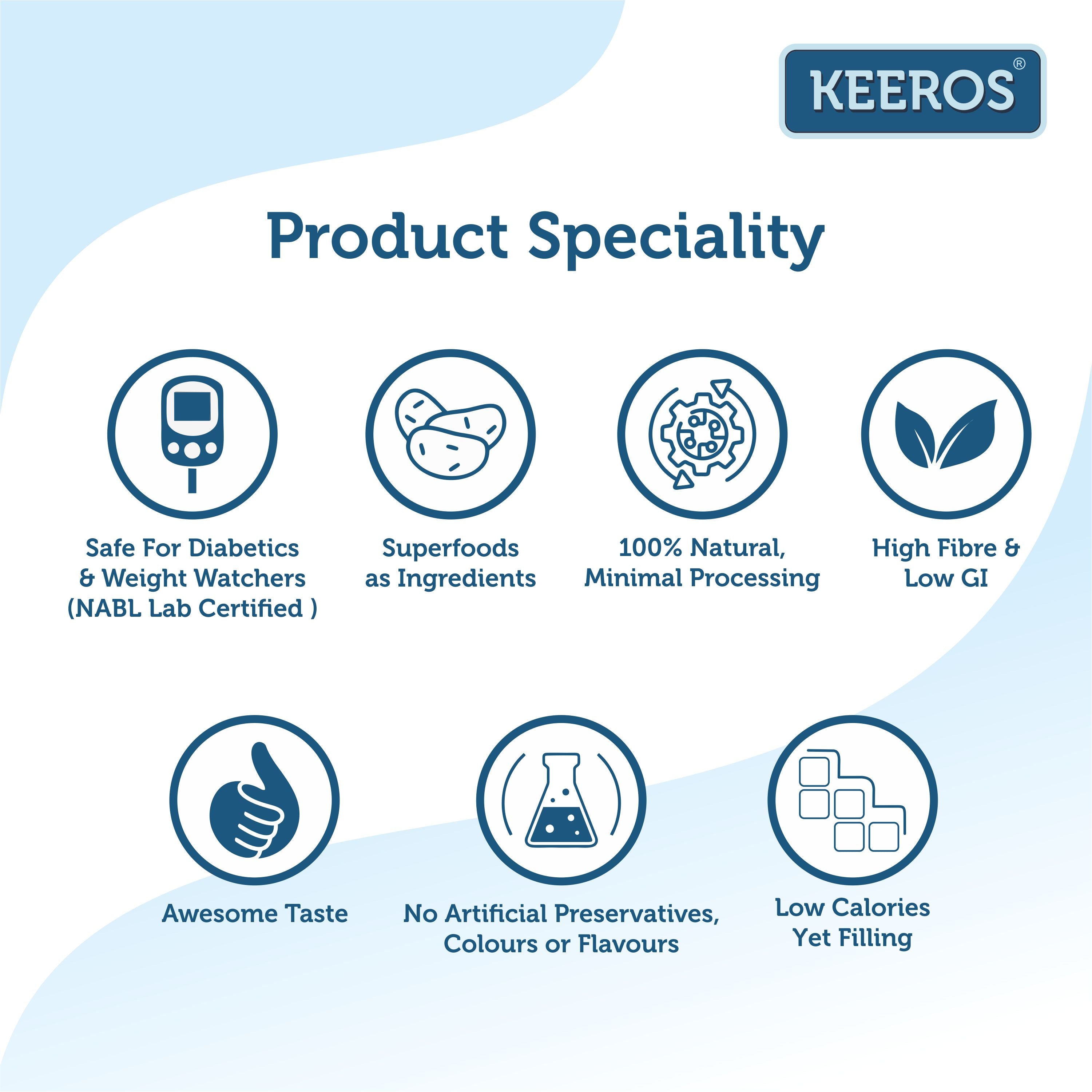 Keeros is making waves with our irresistible Millet-based snacks, drinks, superfoods & Wellness products tailor-made for Diabetics and Weight watchers. What's our secret sauce? It's the perfect blend of taste and health benefits, all stamped with lab certifications. We've touched the lives of over 10 lakh people through 40+ e-commerce platforms, where we're rocking the bestseller title in our category. Plus, we're not just satisfying cravings; we're also giving a boost to the hardworking farmers cultivating Millets.