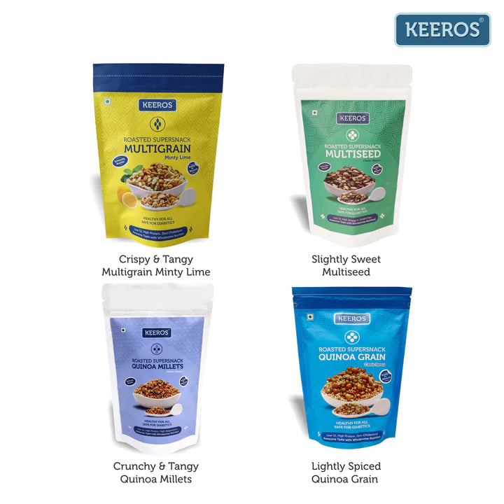 - ENJOY OUR YUMMY FLAVOURS : Lightly Salted MULTIGRAIN; Slightly Sweet MULTISEED; Lightly Spiced QUINOA GRAIN; Tangy & Crunchy QUINOA MILLETS