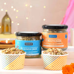 Healthy Diwali Gift Hamper | Combo of Sweet & Salted, Tasty & Nutritious Snacks Jars & Chocolate Coated Nuts Packs in a Premium Gift Pack for Diwali