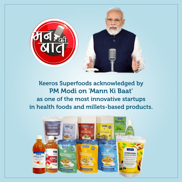 In 2018, the founders Sachin Sahni & Simran planted the seed for Keeros Superfoods while running a chain of wellness centers in Lucknow dedicated to tackling lifestyle issues like obesity, diabetes, and hypertension. Fast forward, and we've sprouted into a thriving startup sensation, catalyzed further by the mention of Keeros by PM Modi ji in Mann Ki Baat as an innovator in Health Foods.