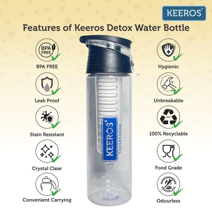 Keeros Infuser Detox Water Bottle 800 ml | BPA Free | Leak Proof, Food Grade Plastic, Durable, Non-Toxic Infuser Water Bottle with Super Easy to use Superherbs Infusers Pack of 30
