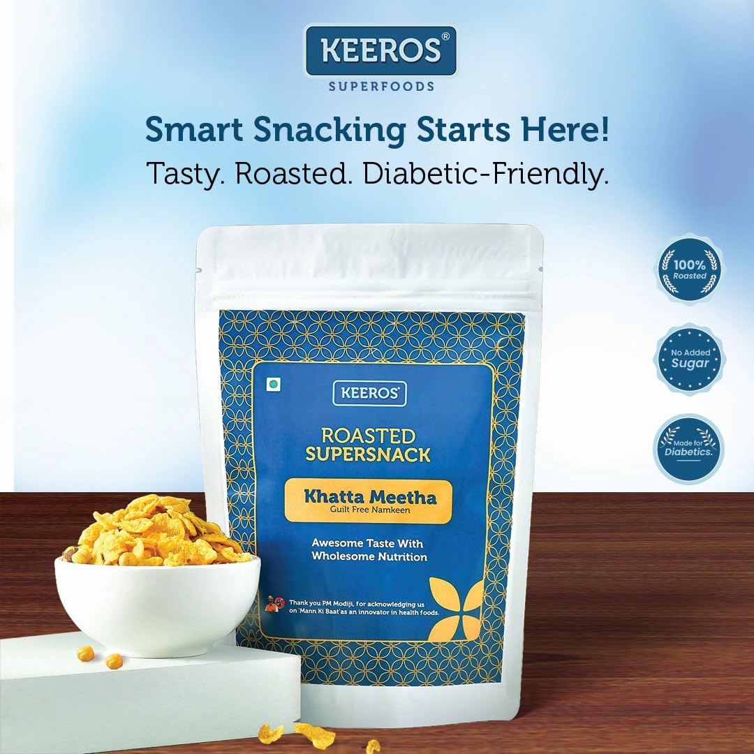 Keeros Tangy & Crunchy Supergrain Mix Roasted Khatta Meetha Namkeen | Diabetic-Friendly, Guilt-Free Snack | High-Fibre, Zero Cholesterol & Trans Fat |200g