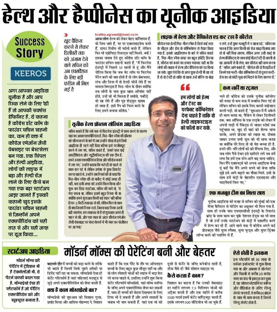 The Keeros startup success story was covered by Dainik Jagran- Inext.