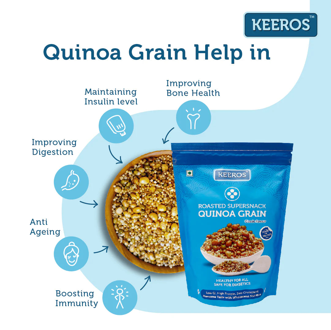 I am: A lightly spiced roasted supersnack! Love to munch on something crunchy, light and flavoursome? I contain a delightfully healthy combination of the mother of grains- Quinoa and 4 more supergrains that pack a punch of protein, fiber, iron and magnesium. Keep me close by at all times or just carry me in your everyday bag and just pop me out whenever you get the urge to munch.