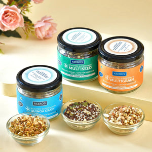- ENJOY OUR FESTIVE FLAVOURS: MULTISEED : Slightly Sweet mix of Dry Dates & 4 Superseeds, MULTIGRAIN: Lightly salted combination of Pearl Millets & 5 other roasted super grains, QUINOA GRAIN: lightly spiced & healthy combination of Quinoa puffs & 4 other roasted super grains.